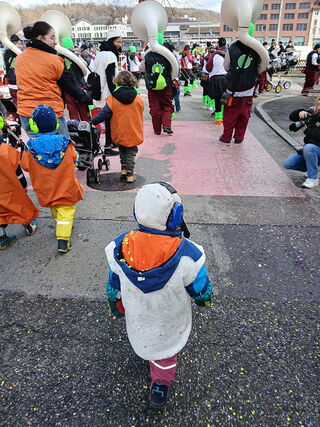 Auch 2025 durfte die Chinderstube am Kinder-Fasnachtsumzug nicht fehlen! Als Schafe und Rüebli verkleidet, genossen die Kinder das bunte und laute Treiben in den Oltner Gassen.