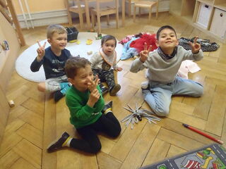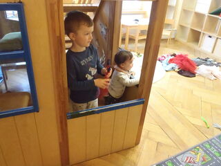 Die Knaben haben am Morgen viel gekämpft mit den Regeln, dass, wenn jemand Stopp sagt, dies auch akzeptiert wird und die Betreuungsperson, welche beobachtet, einschreitet, wenn es zu weit geht. Im Nebenzimmer spielten sie mit der Autostrasse. Die Verkleidungsstücke wurden wenig genutzt.