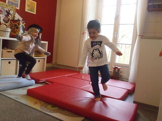 Bei den Mädchen lief es super interessant ab. Sie nutzten die Matratzen als Hüpfburg und spielten Fangis darauf. Zwei Mädchen machten ein Rollenspiel daraus und spielten verkleidet Räuber und Polizei. Das eine Mädchen musste immer ins Gefängnis und ausbrechen, wenn das andere schlief. Wenn dieses wieder aufwachte, fing es die Ausbrecherin wieder ein. Bei den Mädchen funktionierten also gröbere Spiele besser, wenn sie daraus ein Rollenspiel machten. Im Zimmer nebenan spielten später zwei Mädchen mit der Autostrasse und nutzten alle Autos, um darauf zu spielen. Sie benutzten also alle Spielangebote, die ihnen zur Verfügung gestellt wurden.