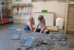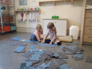 Die Mädchen machten am Morgen ein wunderbares Picknick mit ihren Kindern (den Puppen) und holten viel aus der Spielküche dazu. Sie spielten toll miteinander und schlossen niemanden aus. Sie kommunizierten viel miteinander, was sie alles für ihr Spiel brauchten. Zwischendurch holten sie auch die Putzutensilien hervor und putzten, um das Picknick herum. Die Verkleidungsstücke hatten gar keine Aufmerksamkeit auf sich gezogen.
