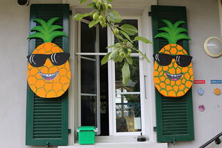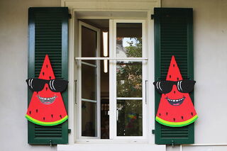 Die coolen Sommer-Früchte, die von den Fensterläden an der Ziegelfeldstrasse grüssen, verbreiten einfach gute Laune. Aber bis all die Früchte reif waren, brauchte es einiges an Einfallsreichtum, Geschick und Arbeit vom Chinderstube-Team.