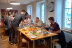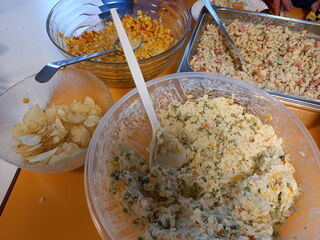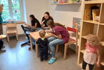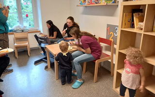 Am Sommerfest von anfangs August 2023 war unser Improvisationstalent gefragt. Weil sich das Wetter überhaupt nicht sommerlich geben wollte, mussten wir das Fest kurzentschlossen im Haus statt draussen durchführen. Die vielen Besucherinnen und Besucher liessen sich die Feierlaune aber nicht verderben, im Gegenteil. Die Stimmung war bestens! Dazu hat sicher auch das feine Essen beigetragen. Die Kinder konnten sich schminken oder tätowieren lassen, also Tattoos, die sich schmerzlos anbringen und auch wieder entfernen lassen, natürlich. Es gab einen kleinen Flohmarkt und einen Stand zum Büchsenwerfen. Kinder und Eltern der Gruppen Schmetterlinge und Raupen konnten, wenn sie Lust hatten, zusammen kreativ sein und basteln. Ein rundum gelungenes Sommerfest, halt mit mehr Sonne im Herzen als am Himmel.